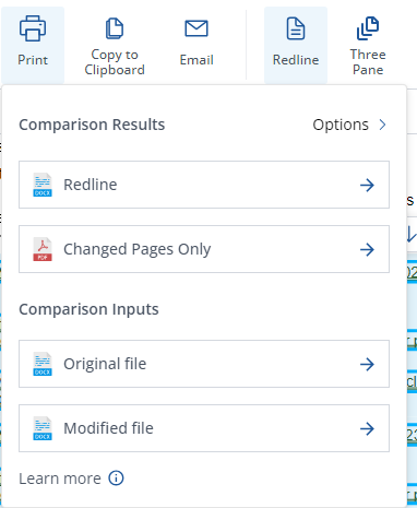 - Redline (DOCX): Print the comparison as a Redline output as a DOCX file