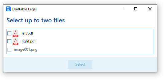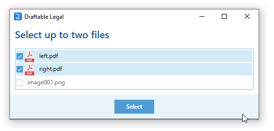 You will be prompted to select the files you wish to compare from the email. In this case, we will select the Left and Right PDF files.