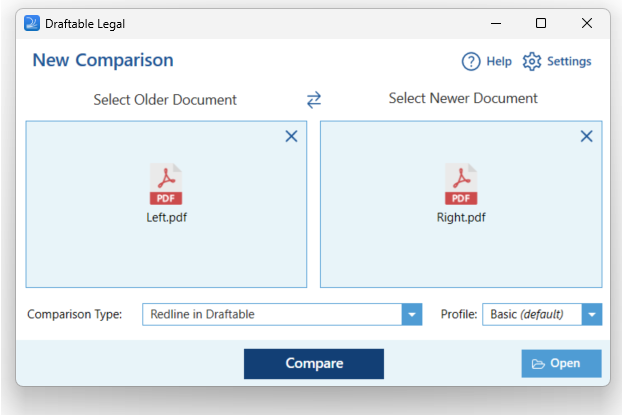 Once the files have loaded, you can run the comparison by selecting the compare button.