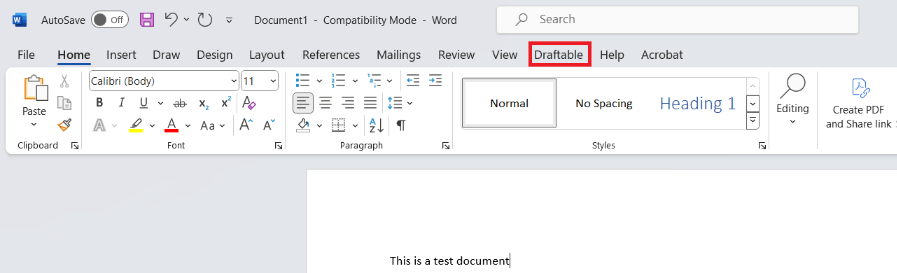 If you are working with a document in Microsoft Word that you want to compare, you can open Draftable Legal from within Microsoft Word.1