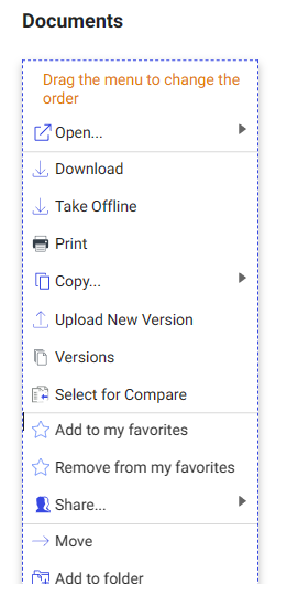 That completes the context menu for the Documents context menu. Repeat steps 11 to 15 for the version’s context menu. You should see a result similar to below.