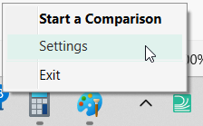 This can be done in various ways, either by clicking settings in the new comparison window or right-clicking the taskbar icon and selecting settings. See the examples below.