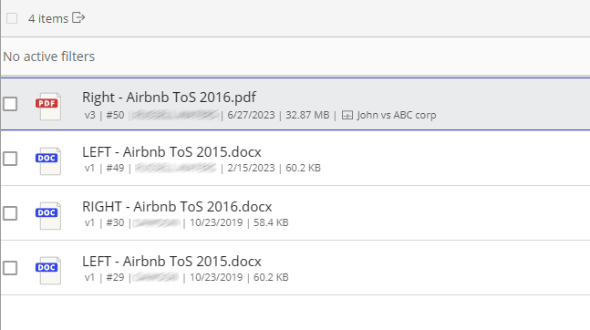 Regardless of whether you selected 1 or 2 documents, Draftable Legal will load the New Comparison window with the selected documents, ready for you to Compare.