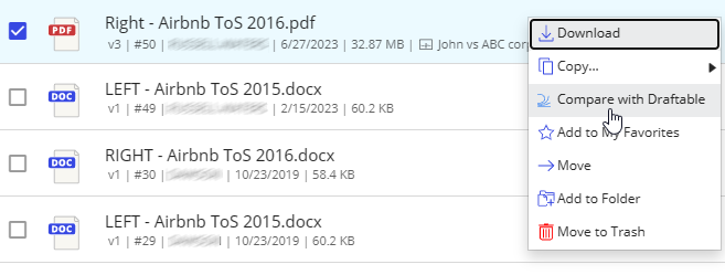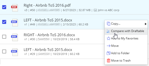 Note: If you select 3 or more files, the Compare with Draftable toolbar menu option will not be available.