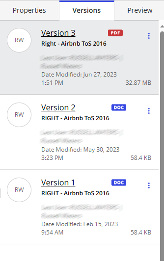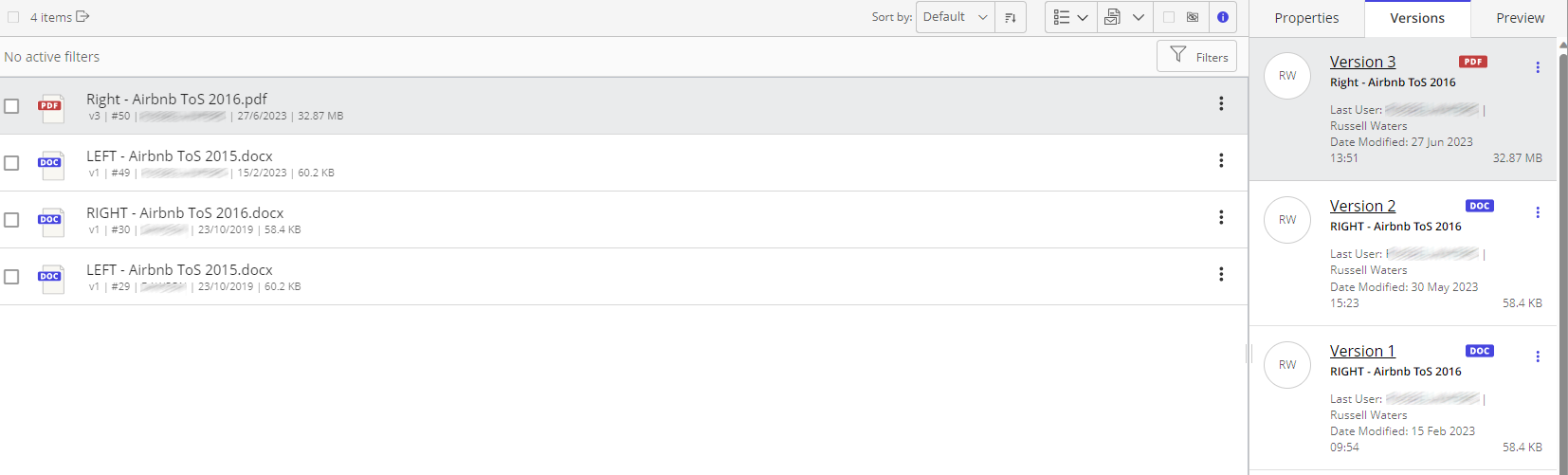 If you want to compare a specific version of a document in iManage, you can by going to the versions tab.1