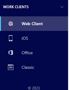 Now that the application is configured, we need to set up the web client context menus. In the left-hand menu bar, scroll until you see Work Clients, then select Web Client.