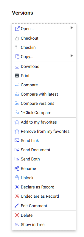 That completes the context menu for the Documents context menu. Repeat steps 11 to 15 for the version’s context menu. You should see a result similar to below.