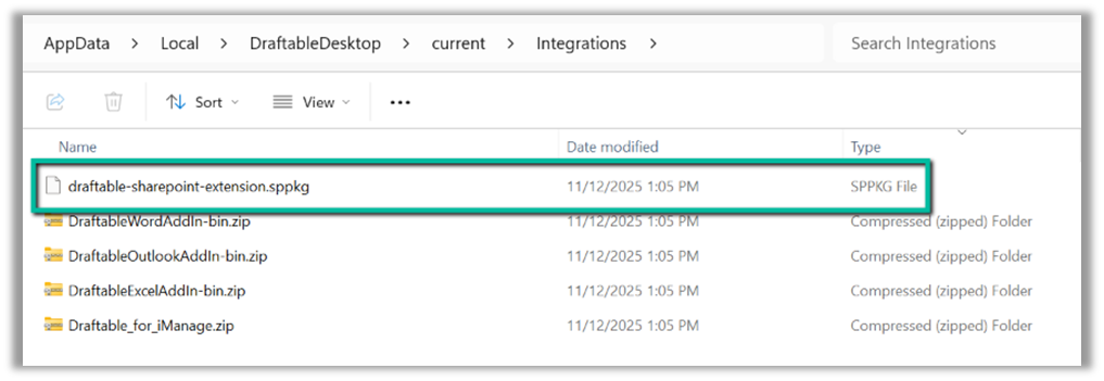 Navigate to the location below, select the “draftable-sharepoint-extension.sppkg” file and click open.