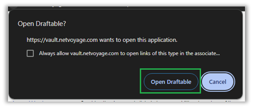 Note: You may be prompted with a confirmation box. Simply press Open Draftable to progress