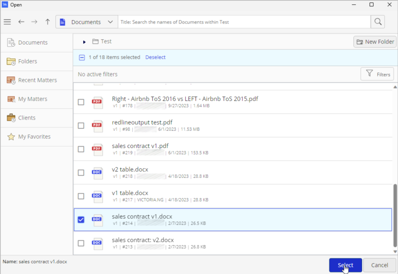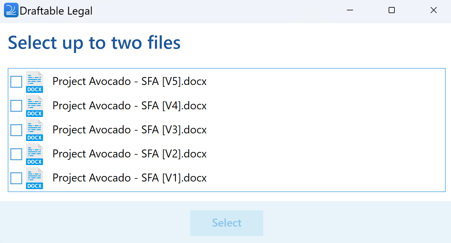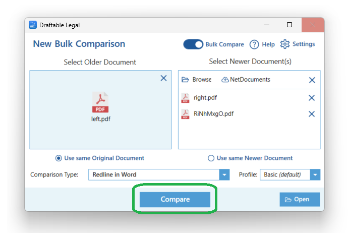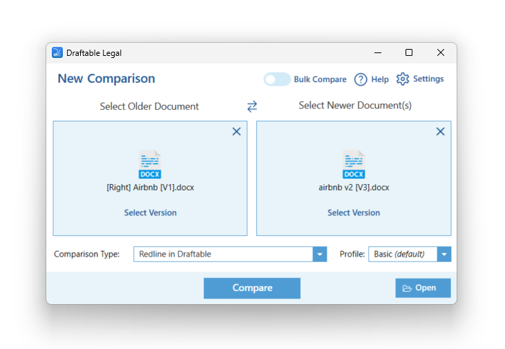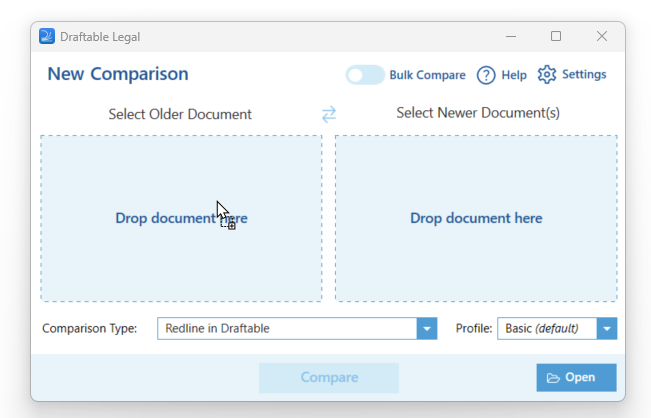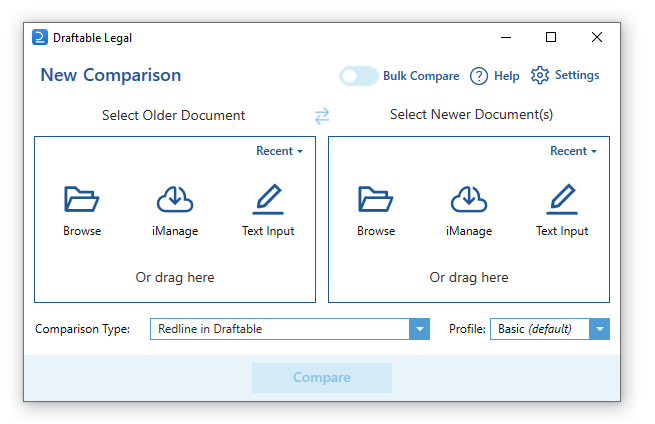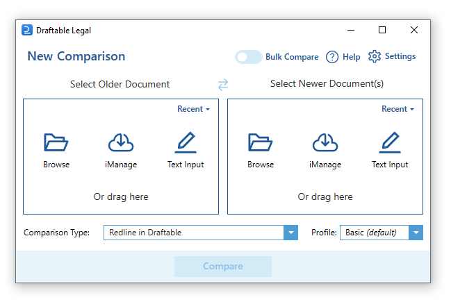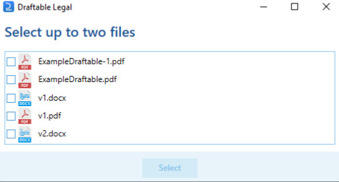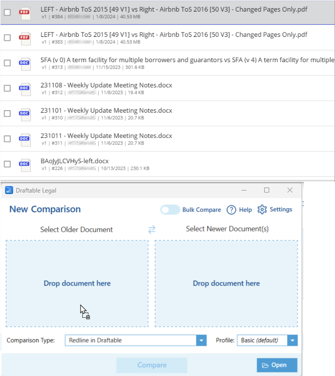 - If the comparison is launched from within Word, Outlook or your DMS (e.g. iManage, NetDocuments), the selected file(s) will already be uploaded for comparison;