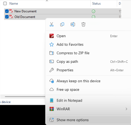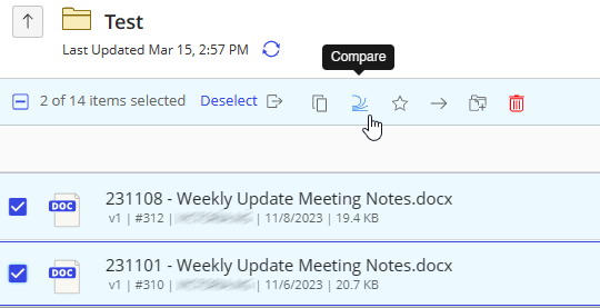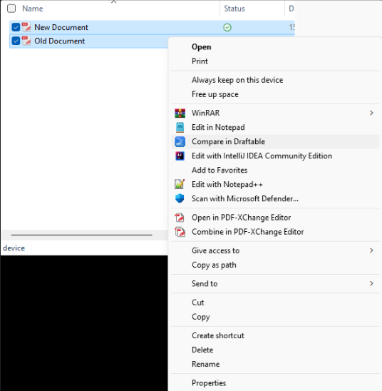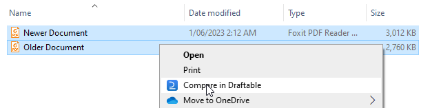 - Option 2: ‘right click’ the file you want to compare and select one of the available compare with Draftable options.