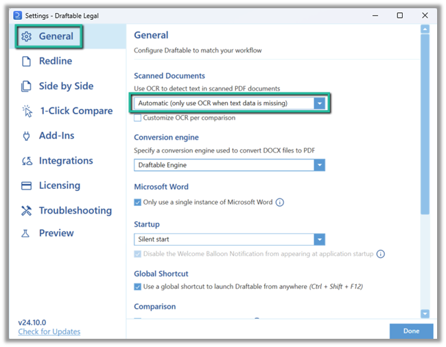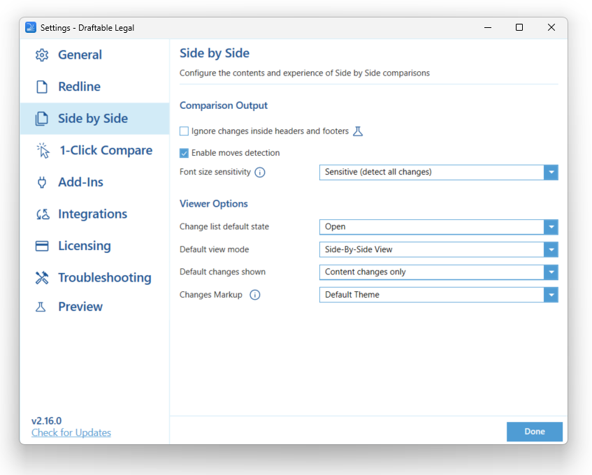 - How do I generate my desired comparison output? (PDF redline, tracked changes, side-by-side)