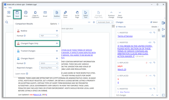 - The comparison will be saved directly in Word with changes shown in tracked changes;