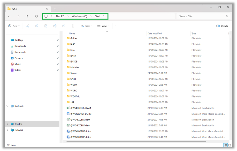In your file explorer, navigate to the root directory of the Worldox install. The default location is This PC > Windows (C:) > GX4.