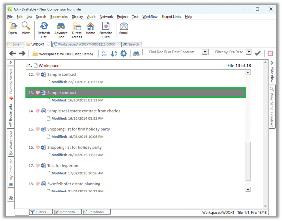 As the Draftable file navigation window opens, Worldox will open its file browsing UI and you will be able to navigate to and select (double click) the file you wish to load into Draftable.