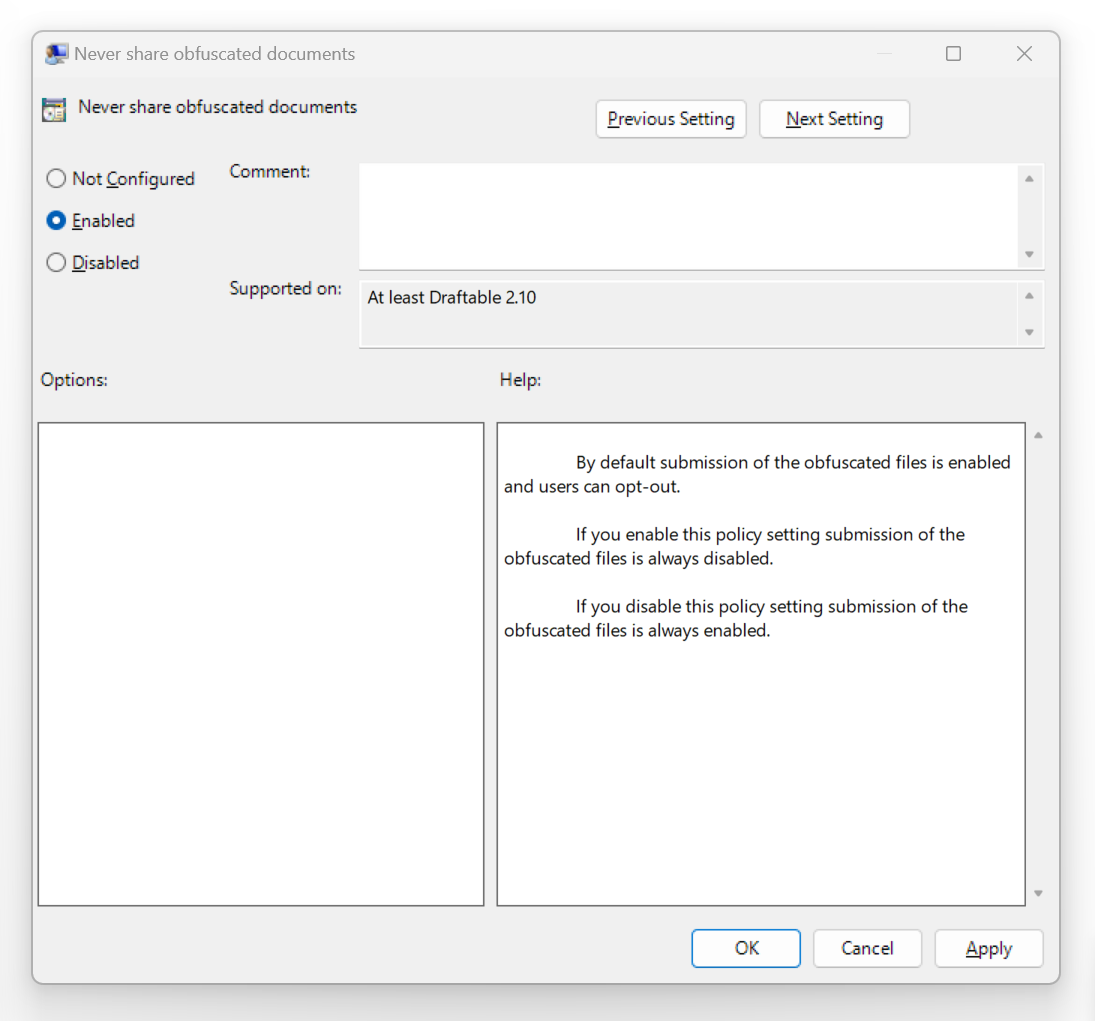 Navigate to the group policy object “Never Share Obfuscated Documents”