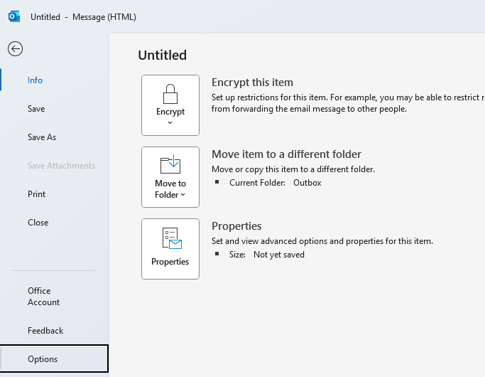 Open a blank message and click File, and then Options.