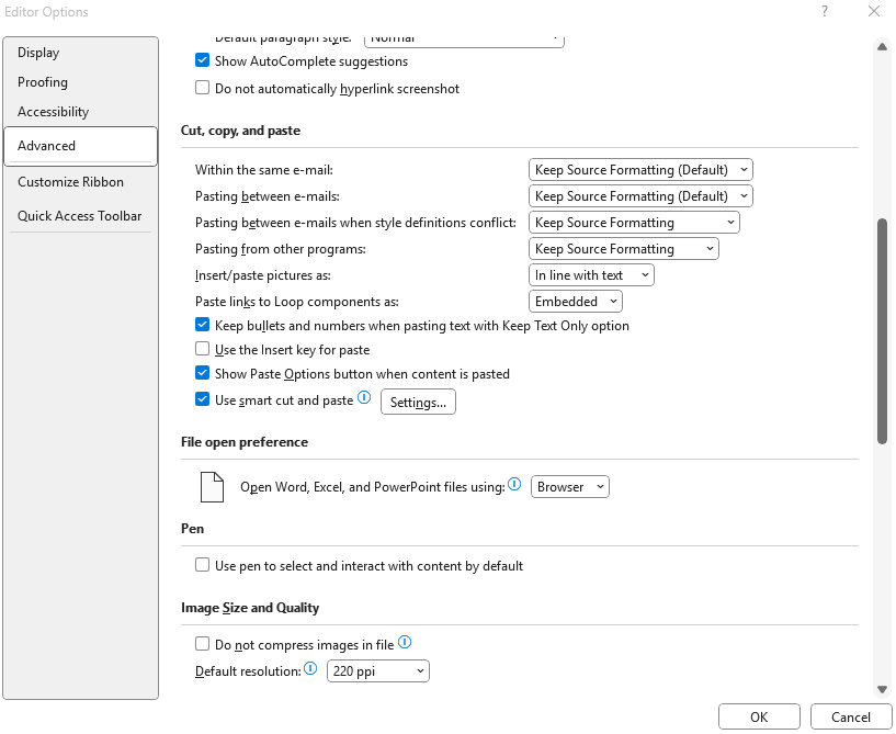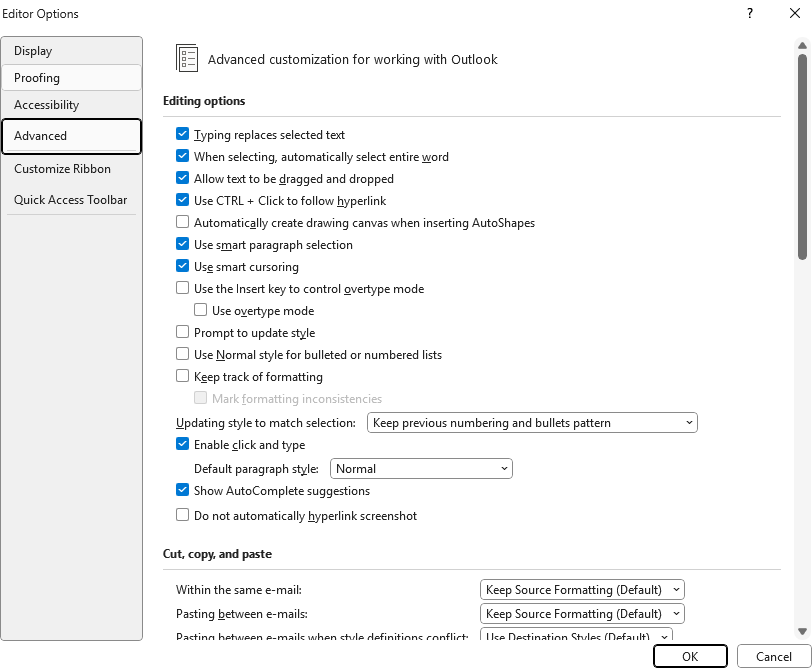 - Navigate to User Configuration ► Administrative Templates ► Microsoft Outlook ► Outlook Options ► Editor Options ► Advanced ► Cut, copy, and paste.