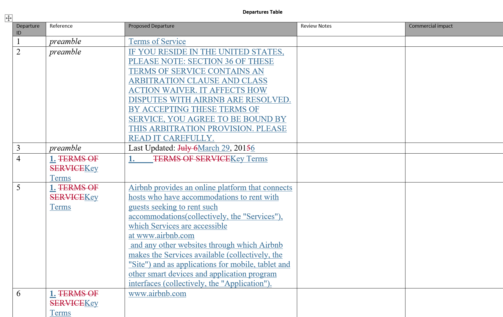 - Faster review: Eliminate the manual process of compiling clause-by-clause changes into a departures or issues list.