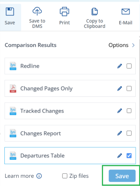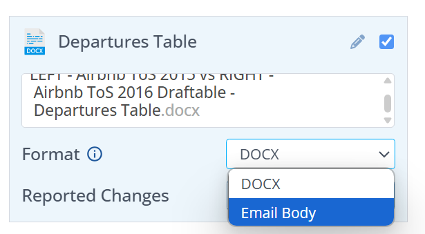- Works with existing workflows: Export the Departures Table through the same export options you already use in Draftable Legal.