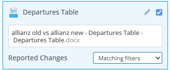 By clicking the ‘pen’ icon, you can curate your departures table export, like changing the name of the file directly or changing what type of changes are included in the table.