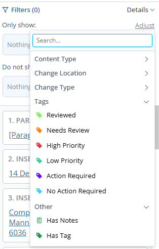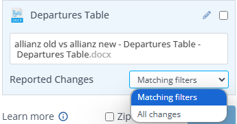 If you want only specific changes to be shown in your departures table, prior to creating the table ensure you have set filters in the change-list section (right-hand side of the Redline viewer) to curate the changes you want to be viewed in both the comparison and the departures table.