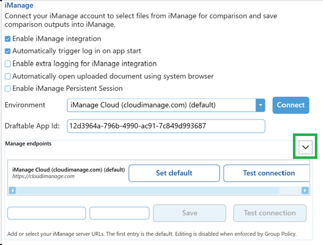 Click on the arrow icon on the Manage endpoint section in the iManage settings