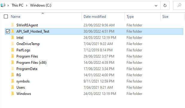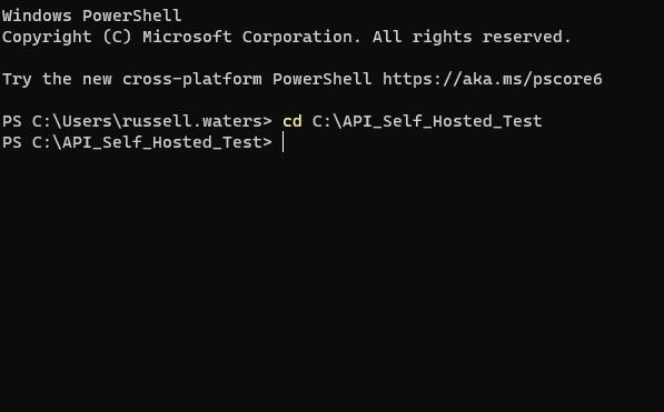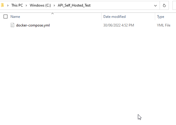 Create a directory on your system where you will wish to host the docker-compose YAML file (docker-compose.yml). In the below example I am using a windows 10 and am creating a new location to host my YAML file called “API_Self_Hosted_Test”.