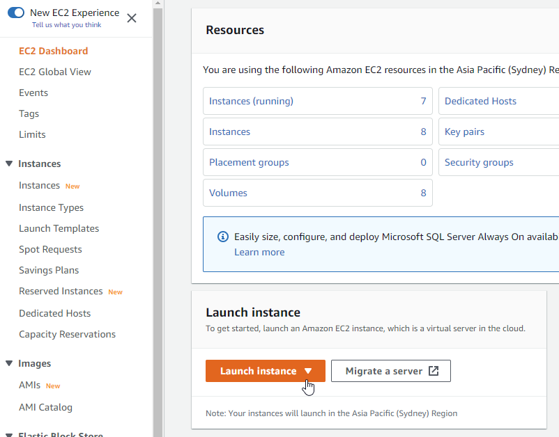 Navigate to the EC2 dashboard and select the Launch instance option.