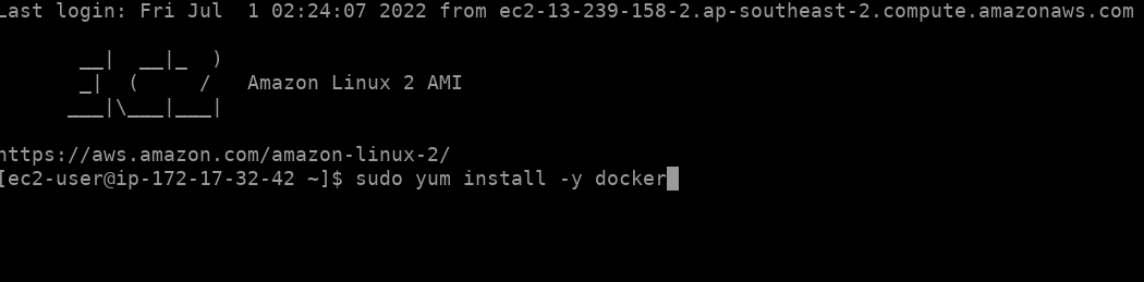 In this instance terminal we will configure and add the latest Draftable Self-hosted image. First we need to add docker to the instance, which can be done with the command below: