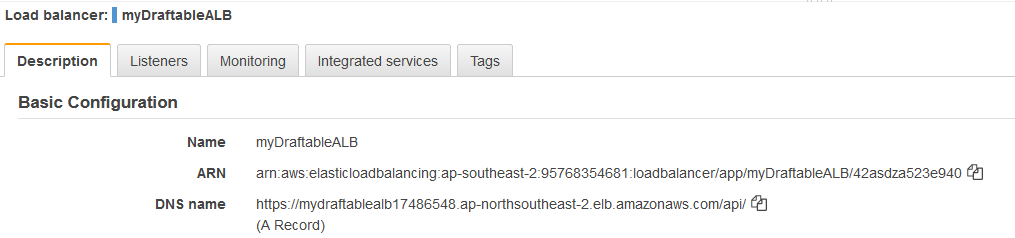 After at least one of your EC2 instances is in service, you can test your load balancer. Copy the string from DNS name (for example, my-load-balancer-1234567890.us-west-2.elb.amazonaws.com) and paste it into the address field of an internet-connected web browser. If your load balancer is working, you see the default page of your server.